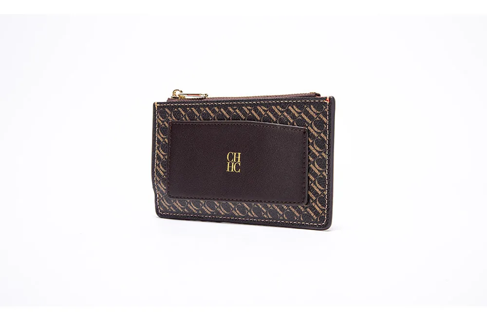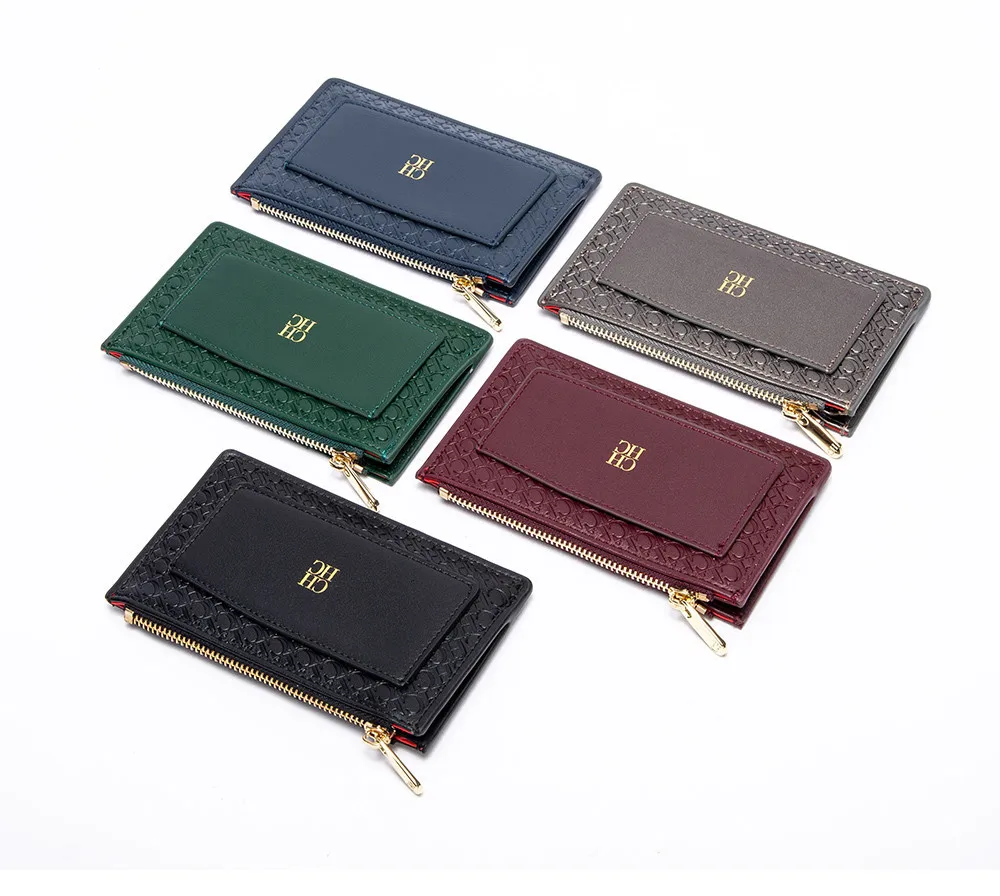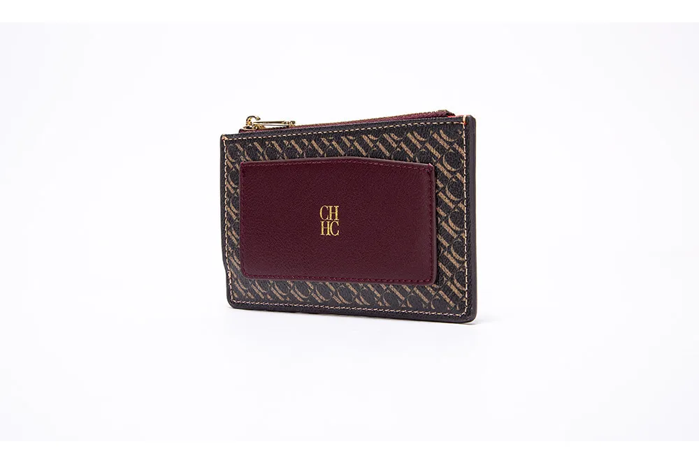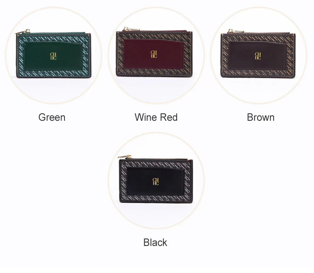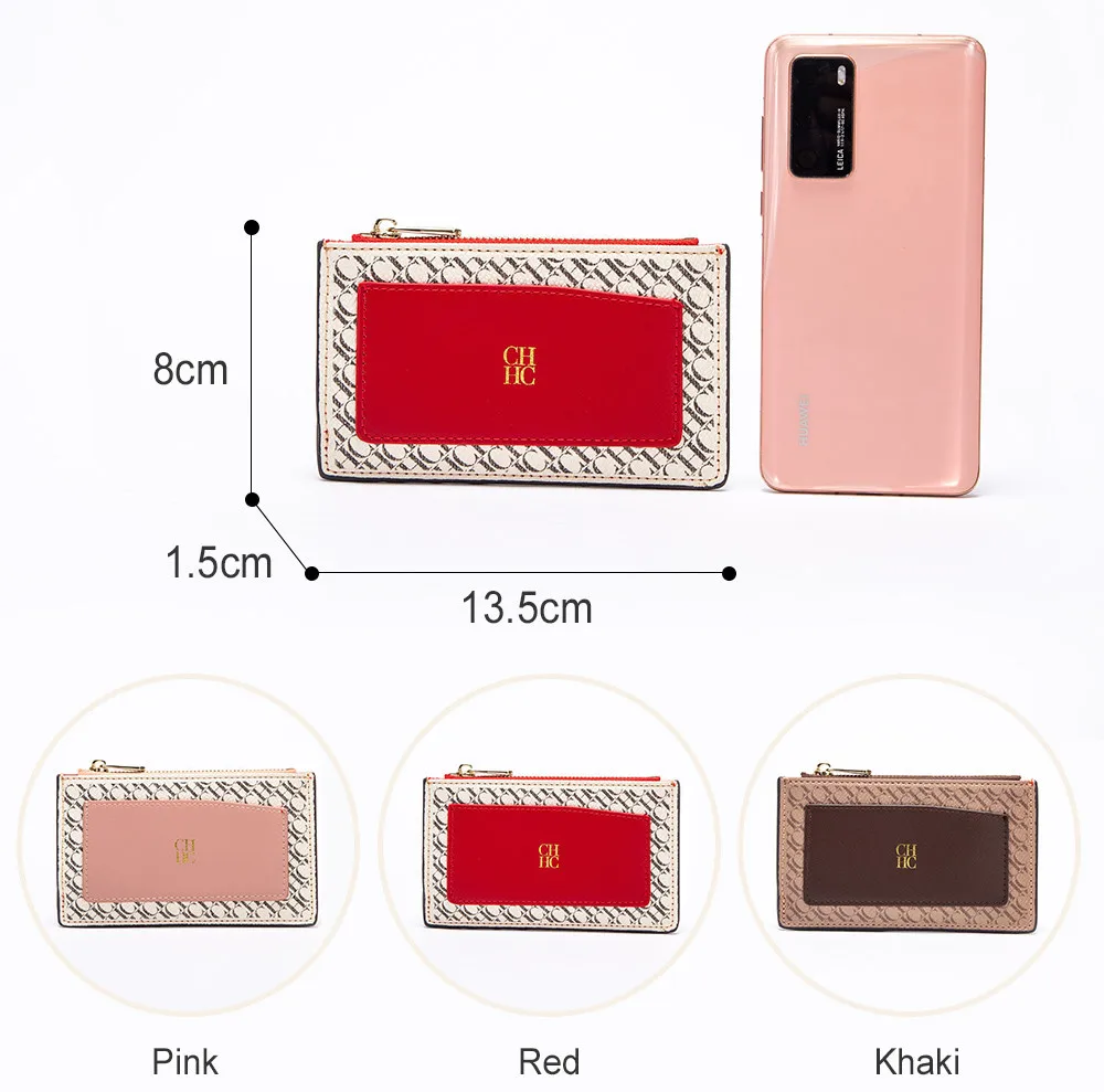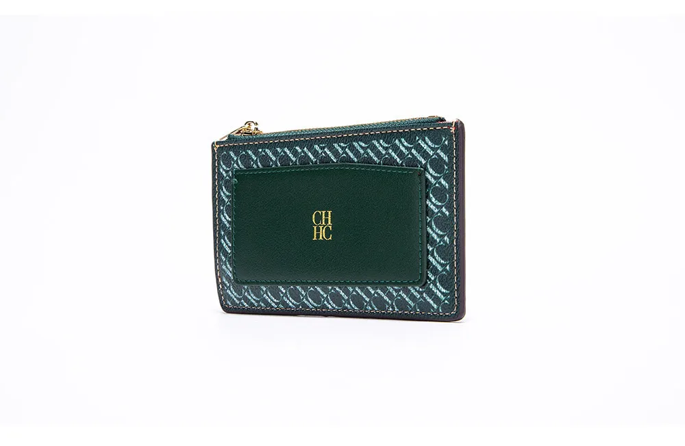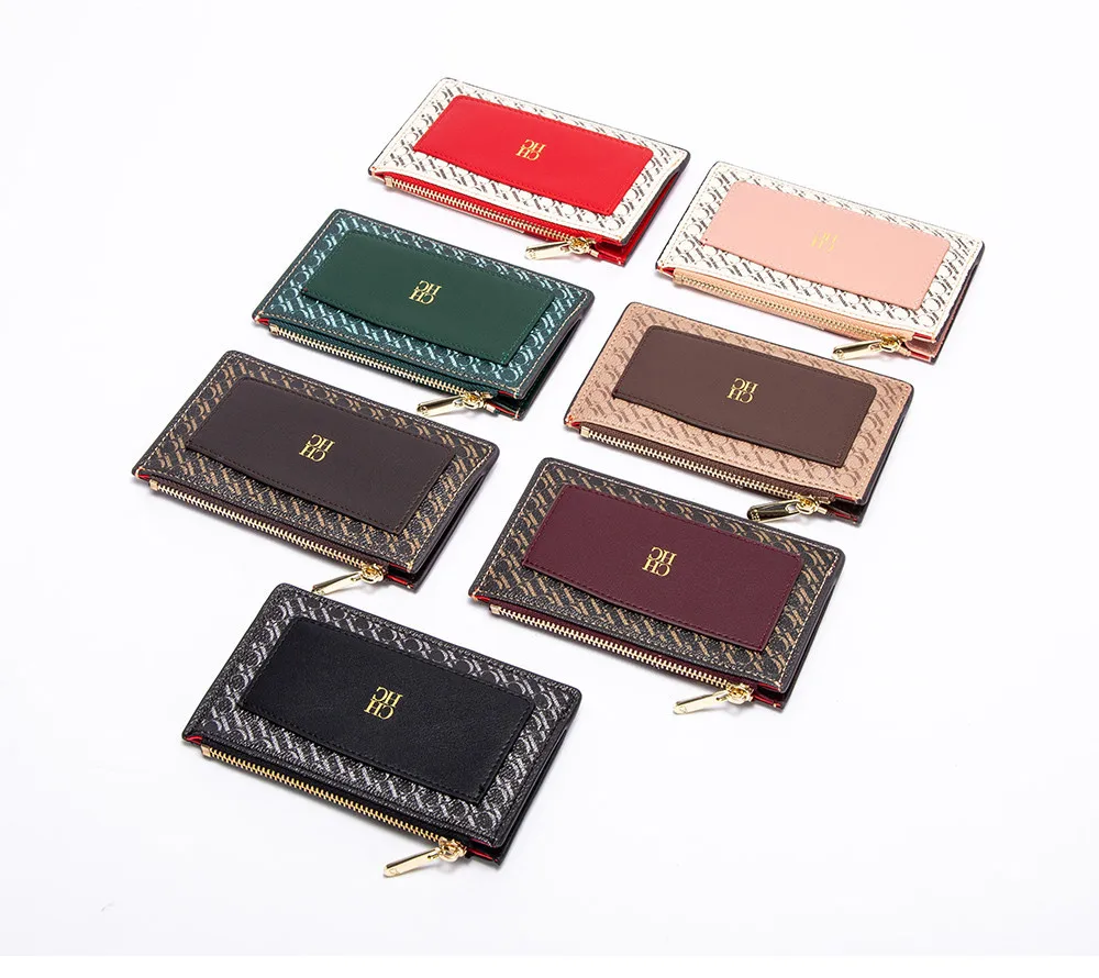 CH Button Folding Monogram Printed Metal Zipper Leather Bag Card Women's Wallet Fashion Retro Temperament Women's Bag