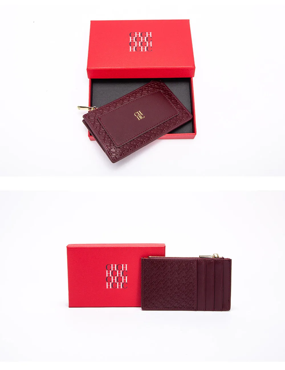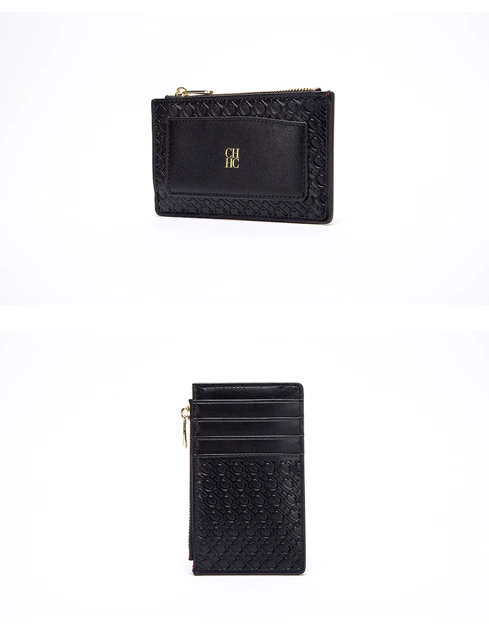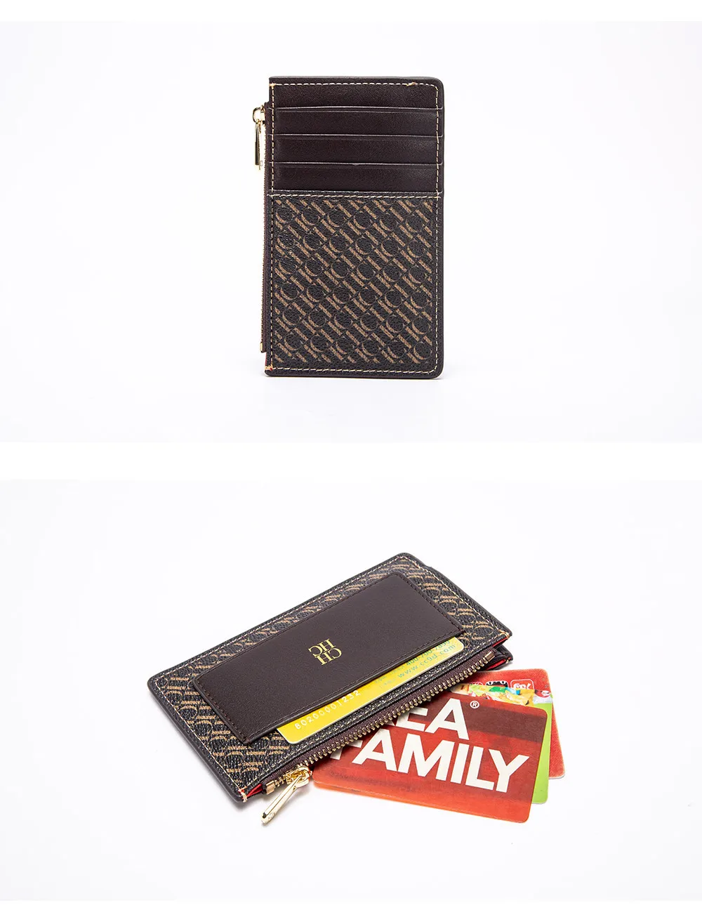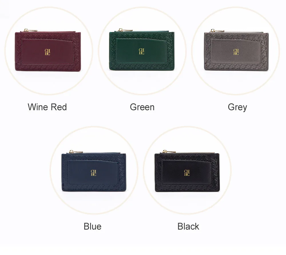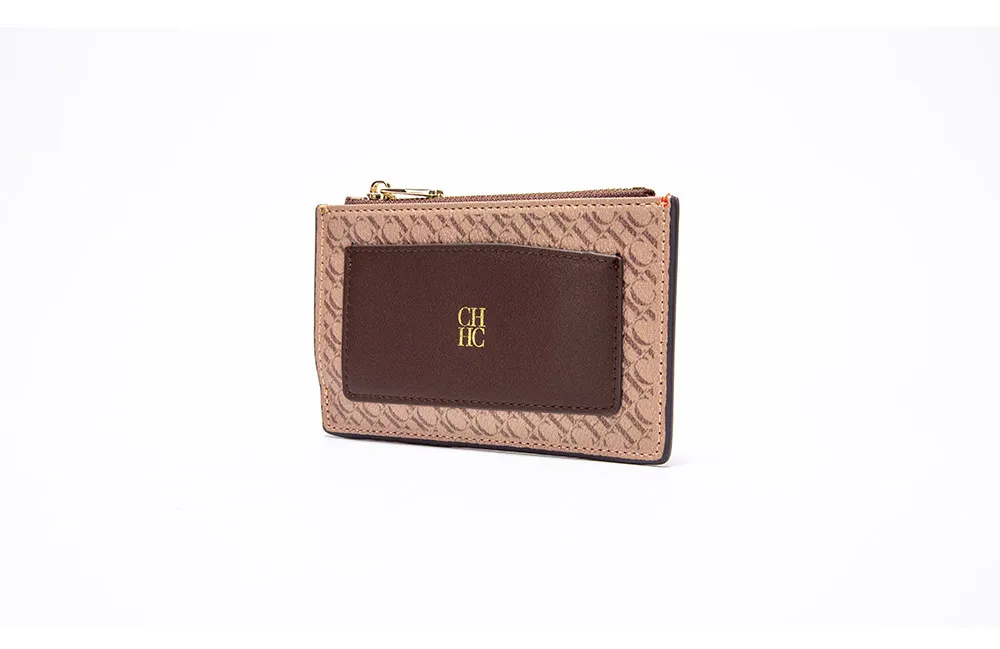 CH Button Folding Monogram Printed Metal Zipper Leather Bag Card Women's Wallet Fashion Retro Temperament Women's Bag