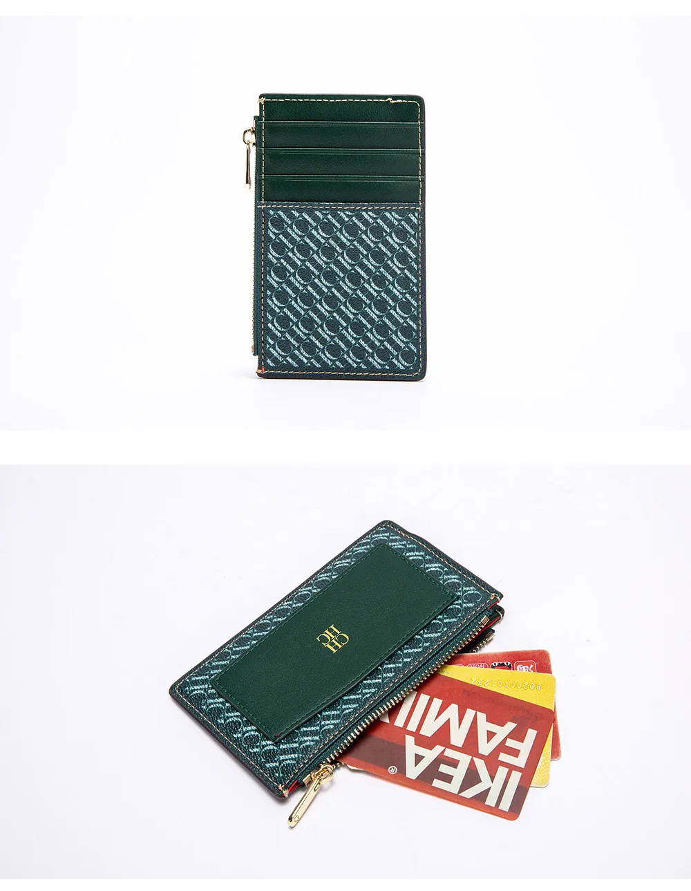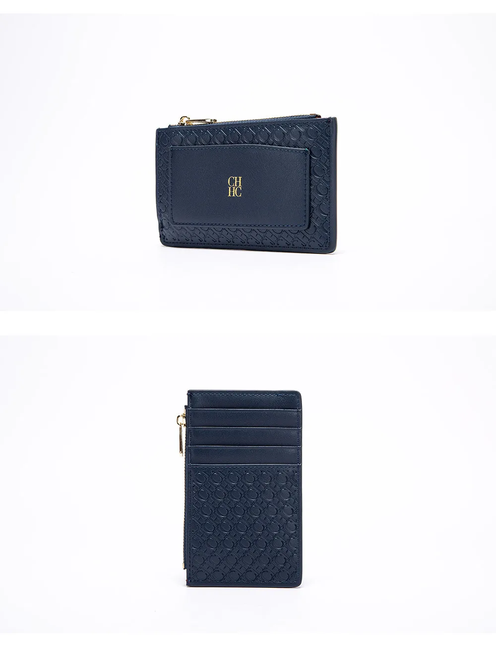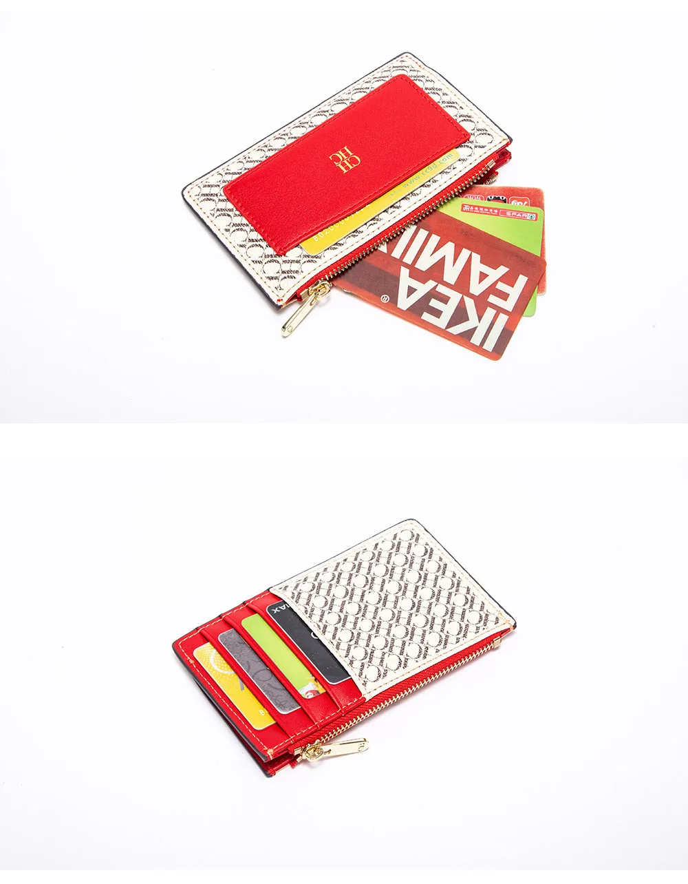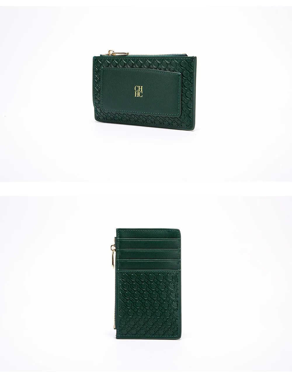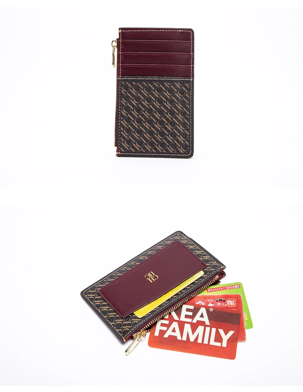 CH Button Folding Monogram Printed Metal Zipper Leather Bag Card Women's Wallet Fashion Retro Temperament Women's Bag