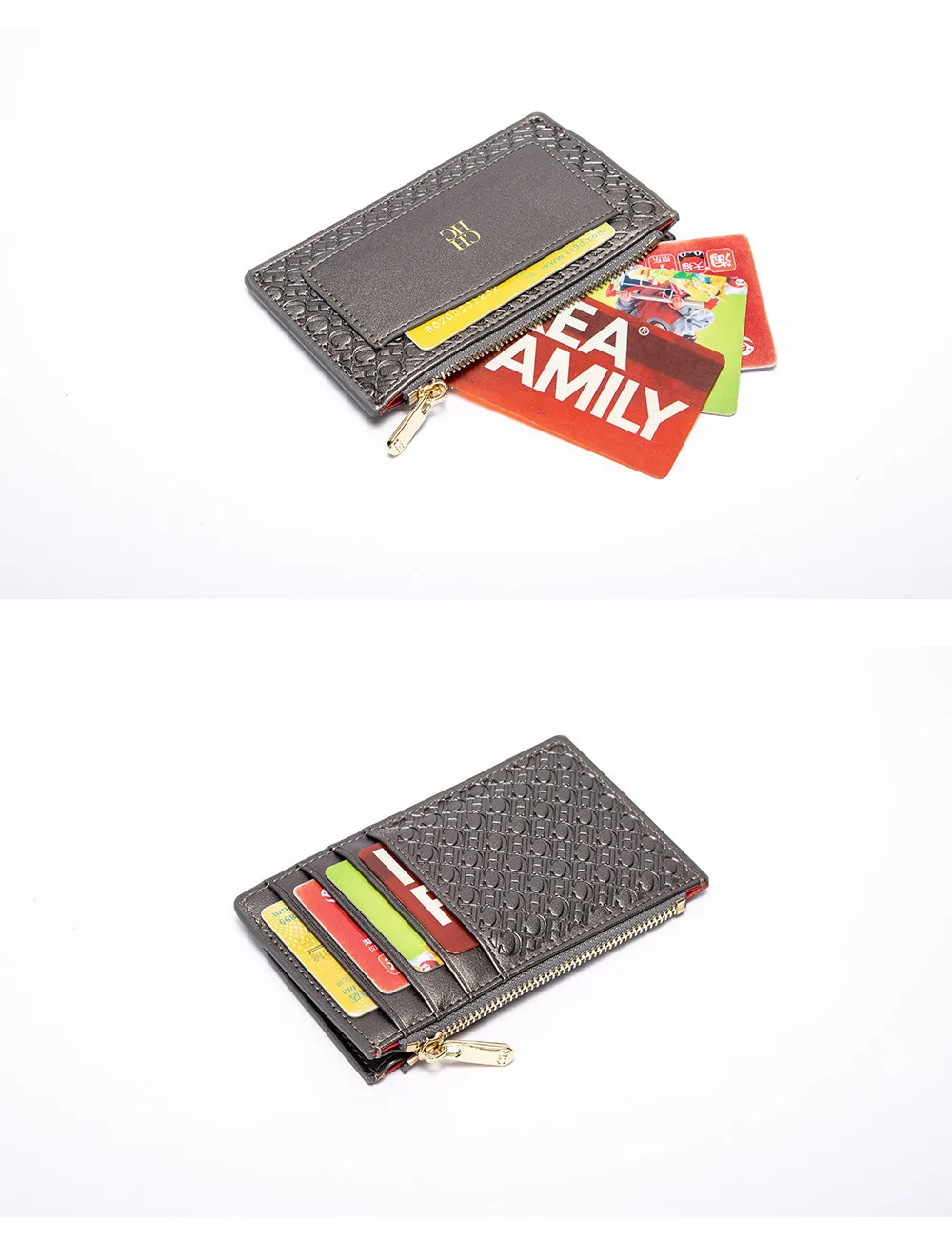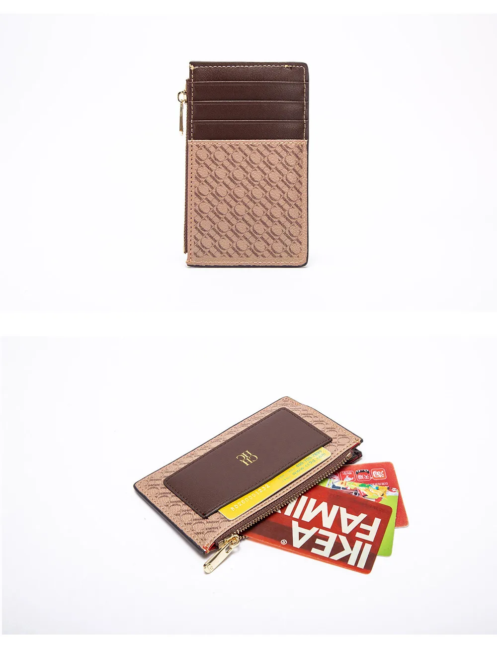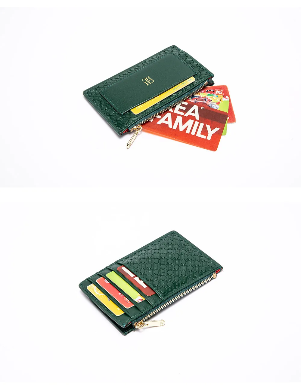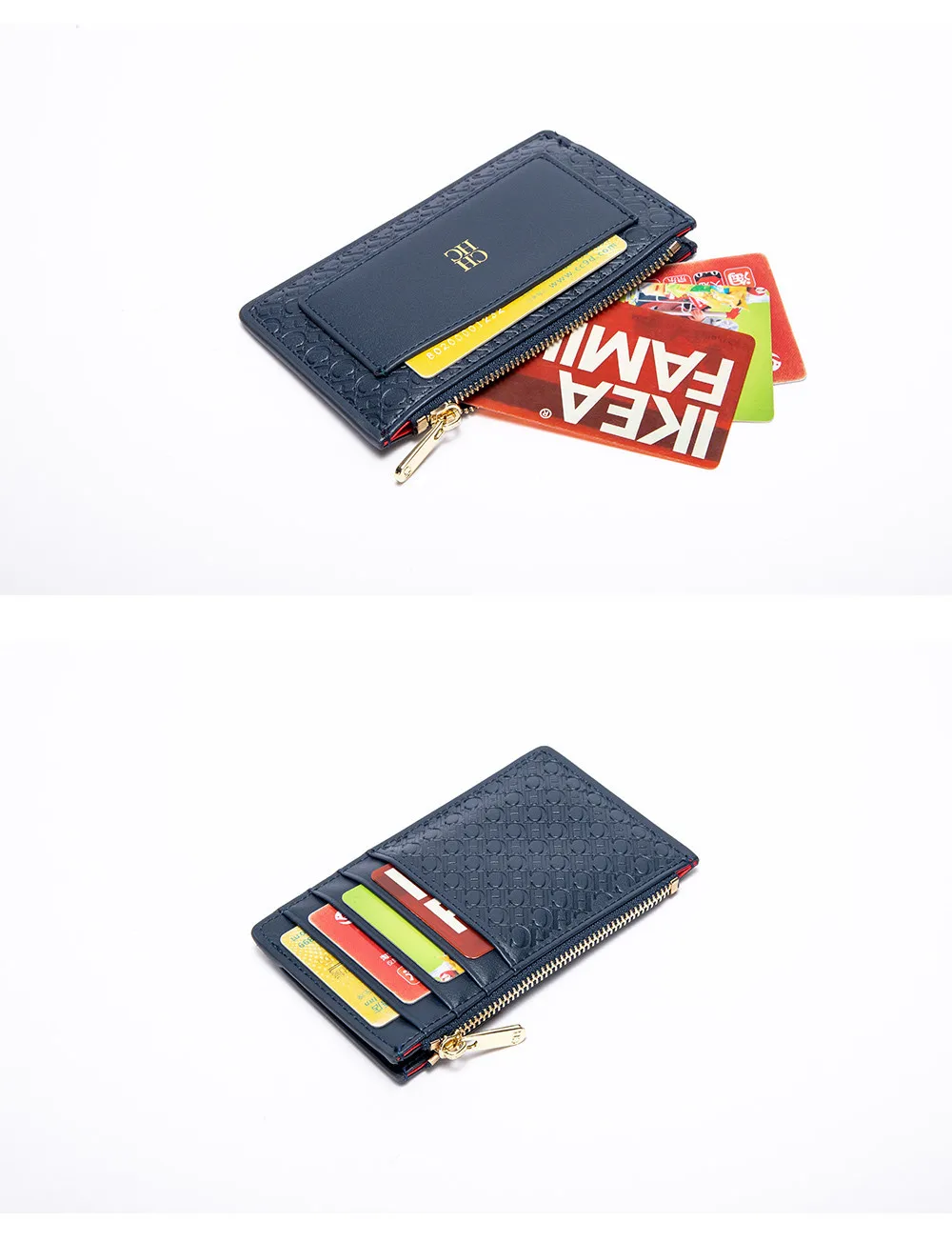 CH Button Folding Monogram Printed Metal Zipper Leather Bag Card Women's Wallet Fashion Retro Temperament Women's Bag