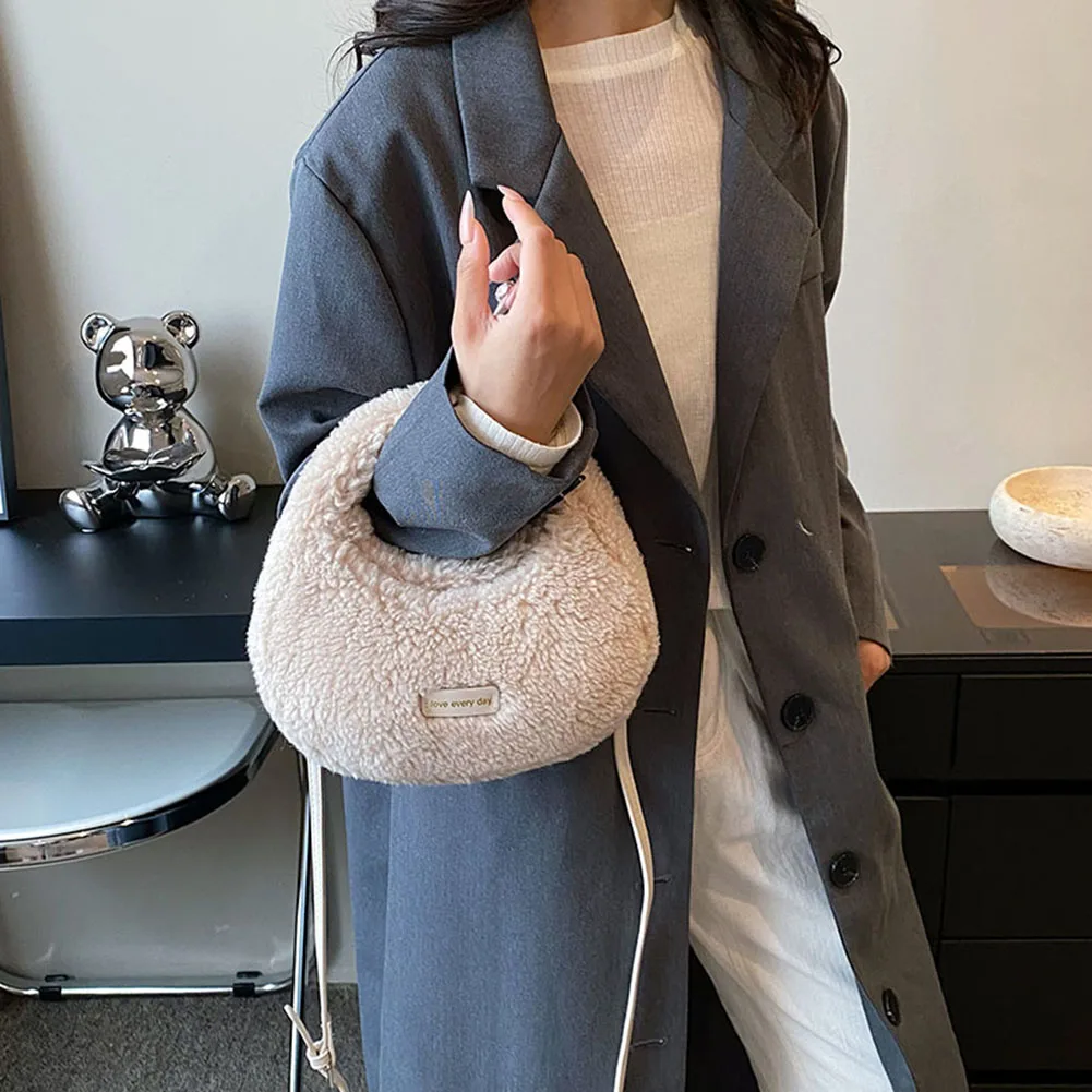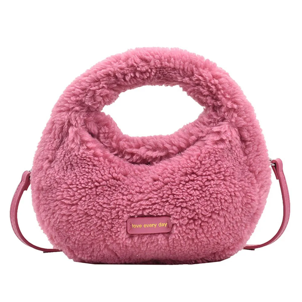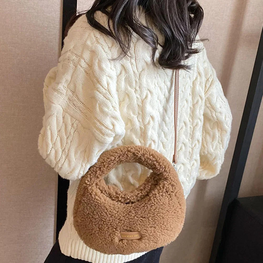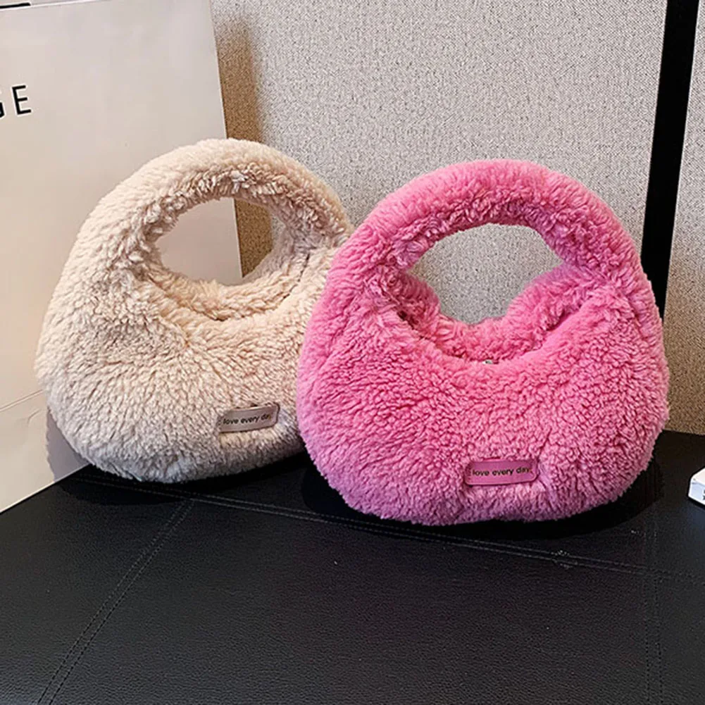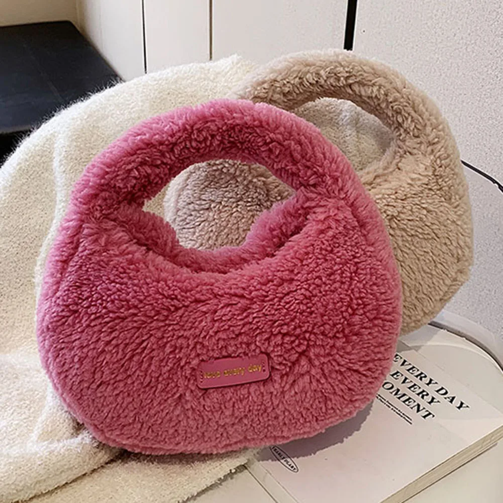 Women Fluffy Plush Tote Handbag Cute Furry Crossbody Shoulder Hobo Bag Faux Fur Bag Dumpling Bag Winter Shopper Purse