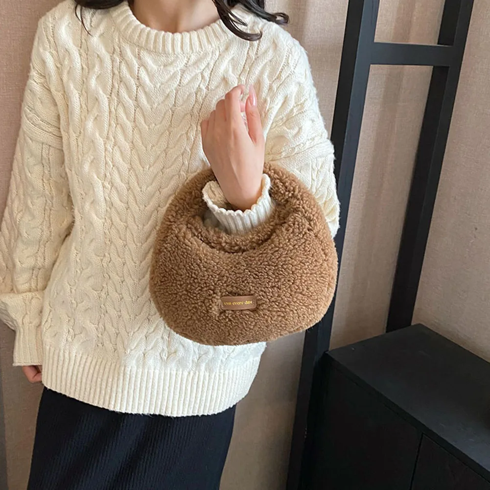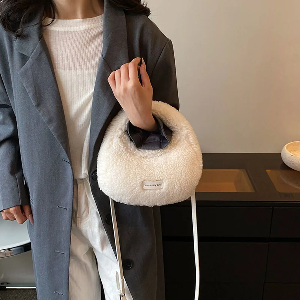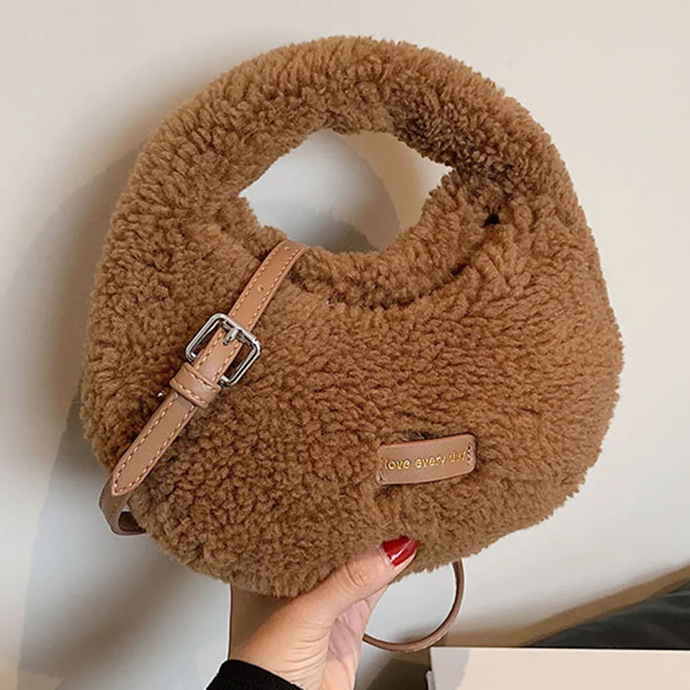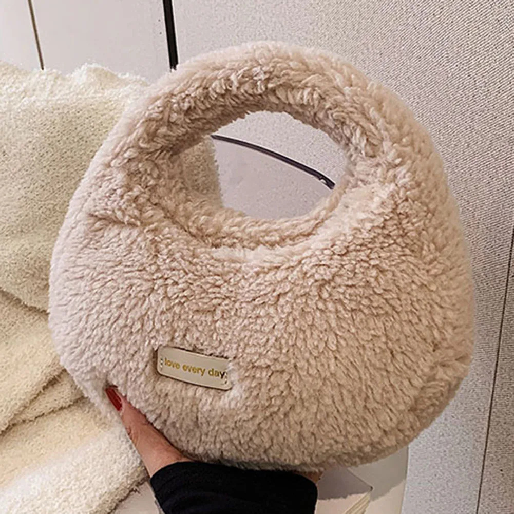 Women Fluffy Plush Tote Handbag Cute Furry Crossbody Shoulder Hobo Bag Faux Fur Bag Dumpling Bag Winter Shopper Purse