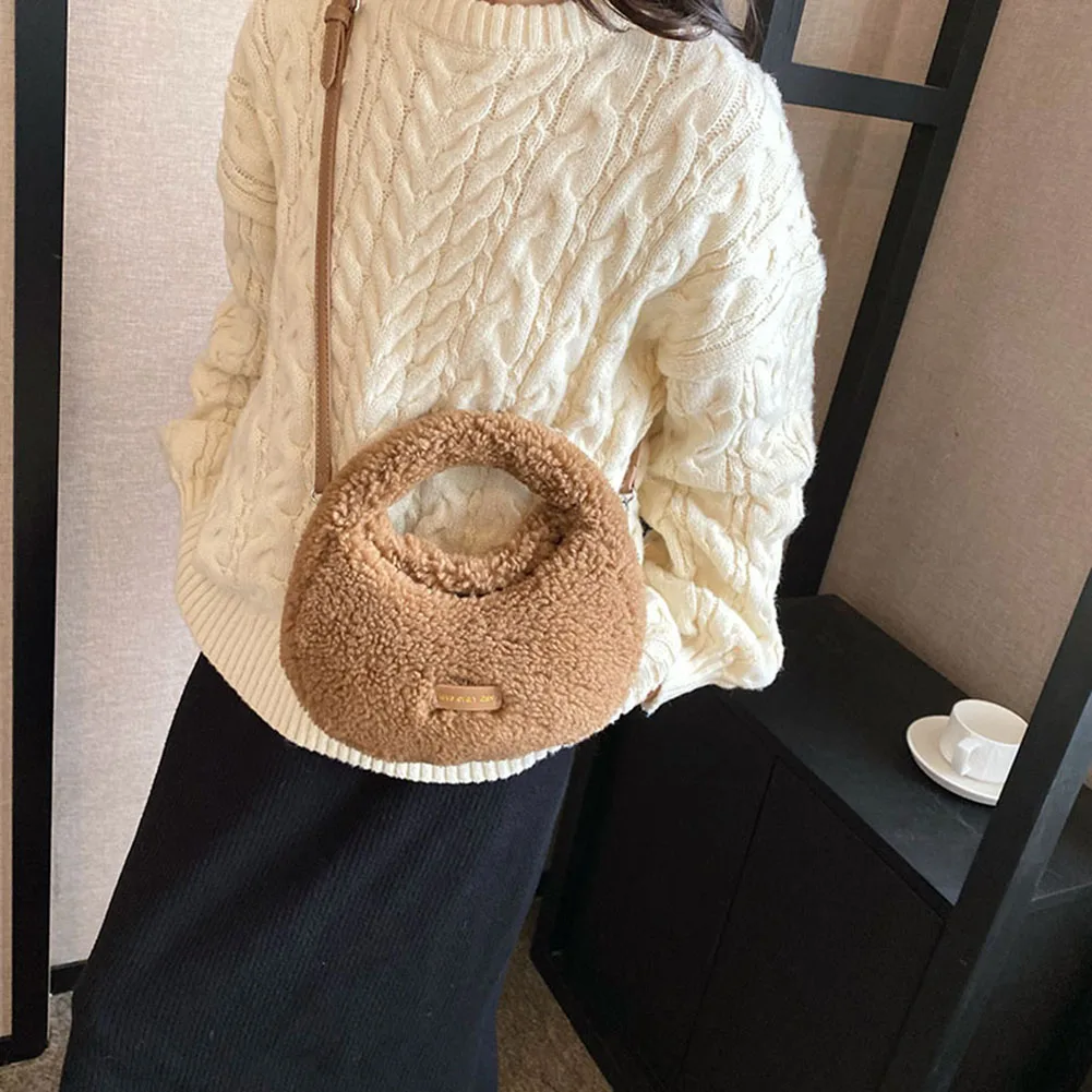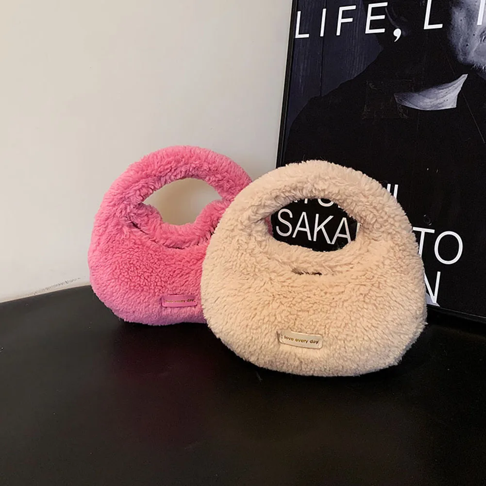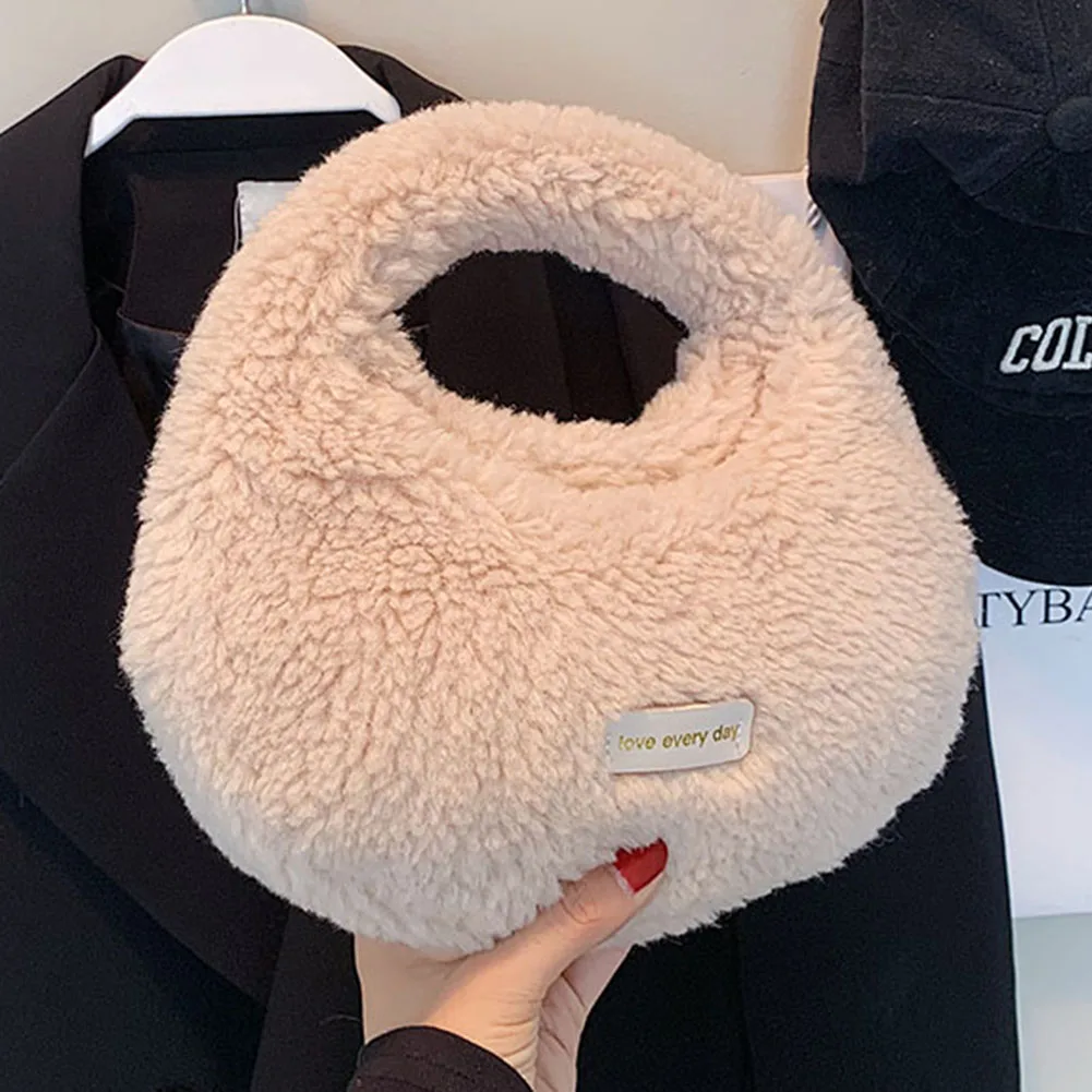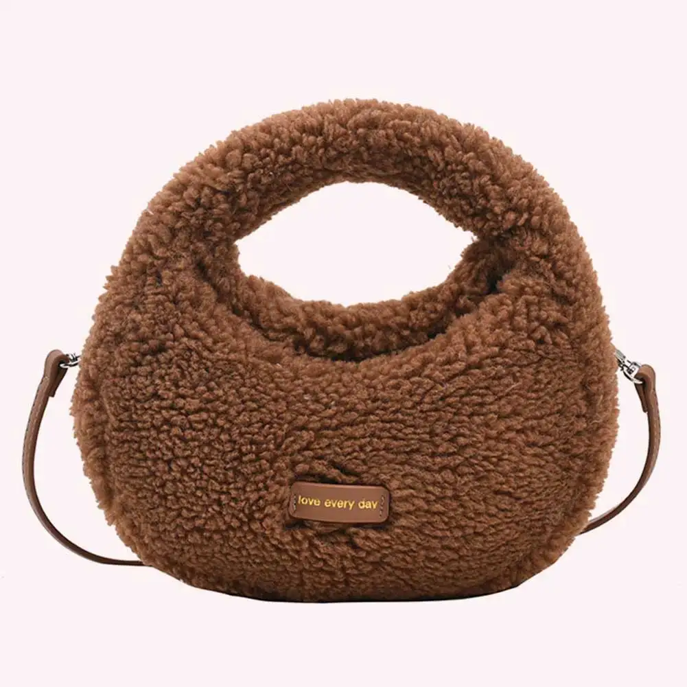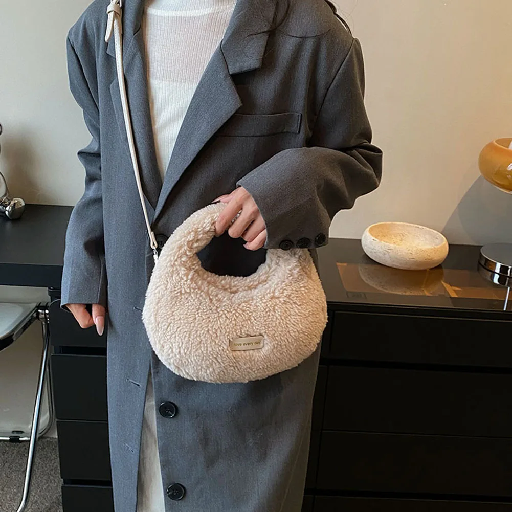 Women Fluffy Plush Tote Handbag Cute Furry Crossbody Shoulder Hobo Bag Faux Fur Bag Dumpling Bag Winter Shopper Purse